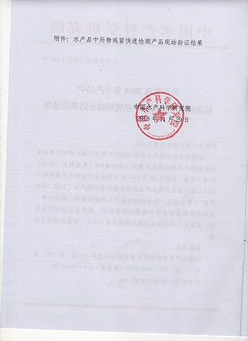 我司以百分百的準(zhǔn)確率合格率順利通過水產(chǎn)品藥物殘留快速檢測產(chǎn)品驗證